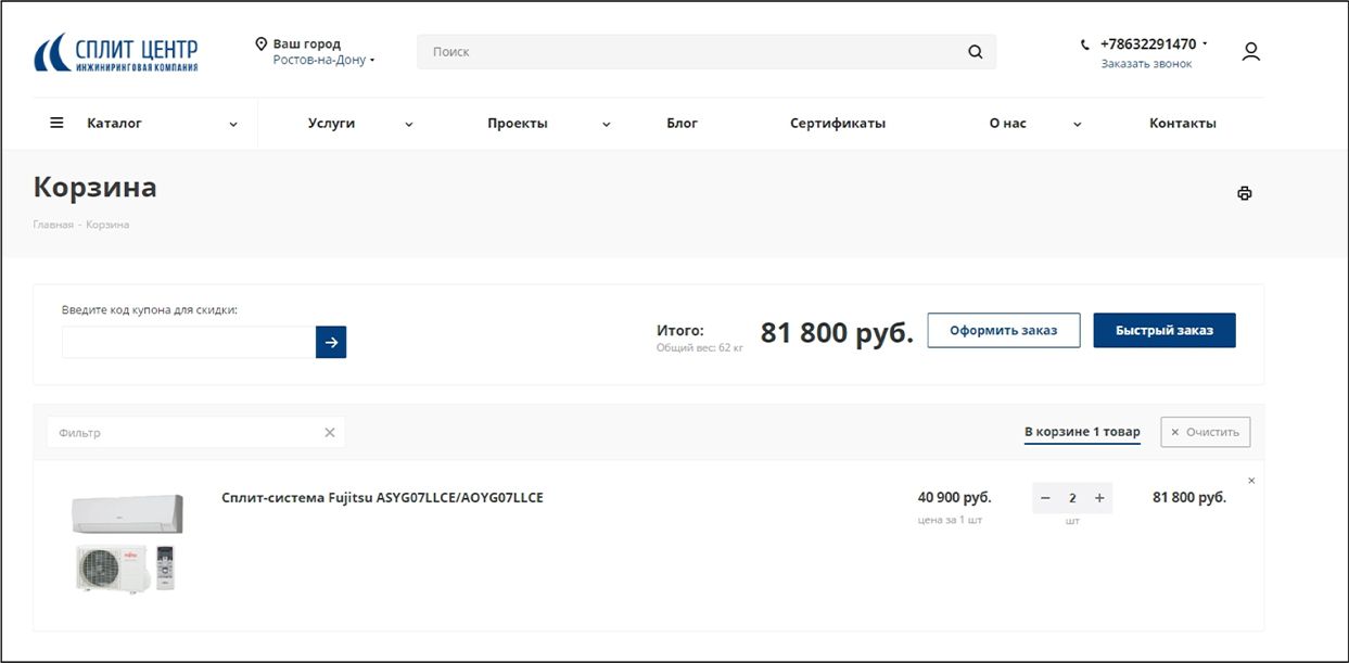 и перейдите к оформлению через кнопки «Быстрый заказ» или «Оформить заказ».